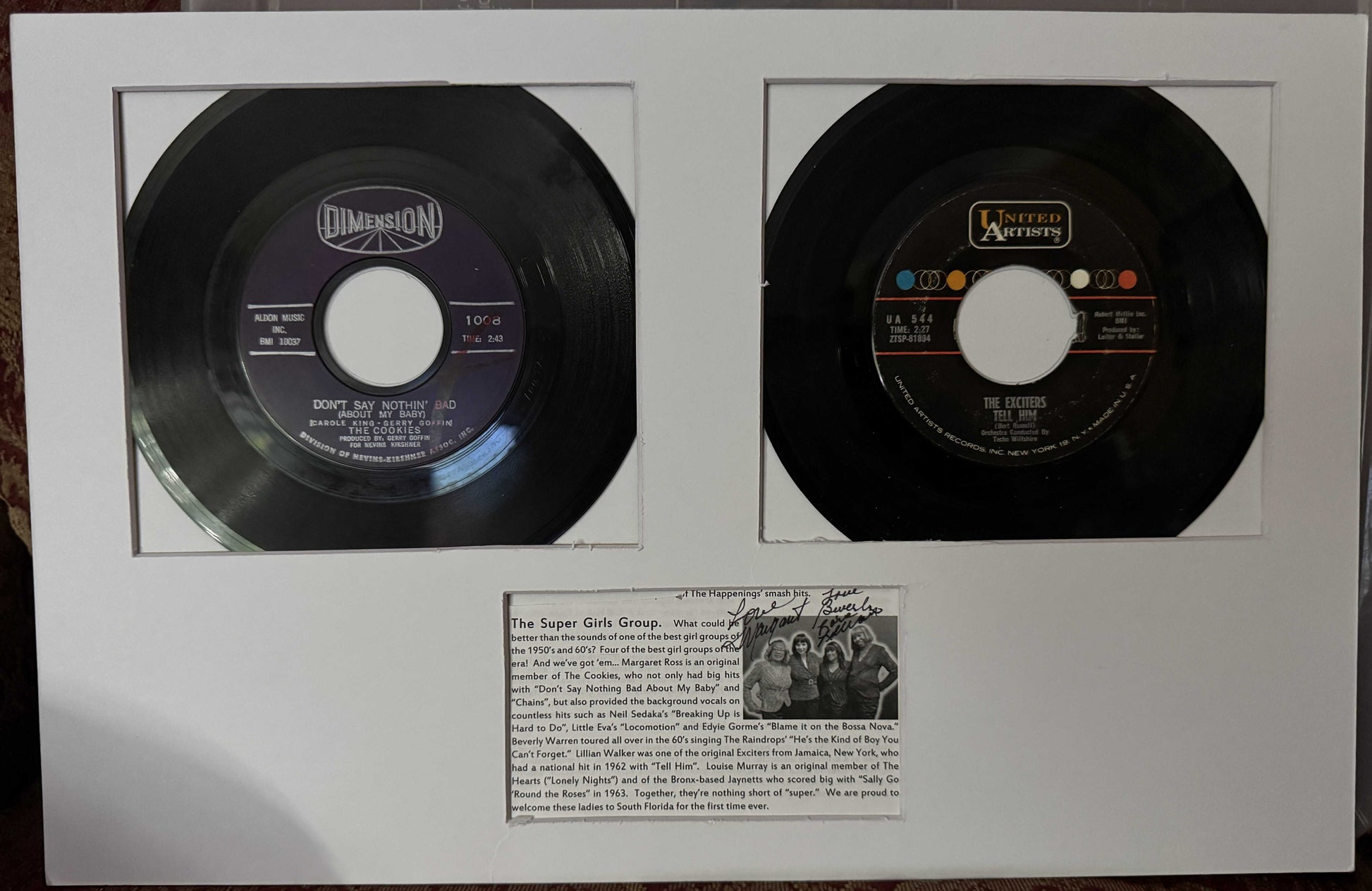 Autographed page from program matted with two 45's - The Exciters "Tell Him" and The Cookies "Don't Say Nothin' Bad"