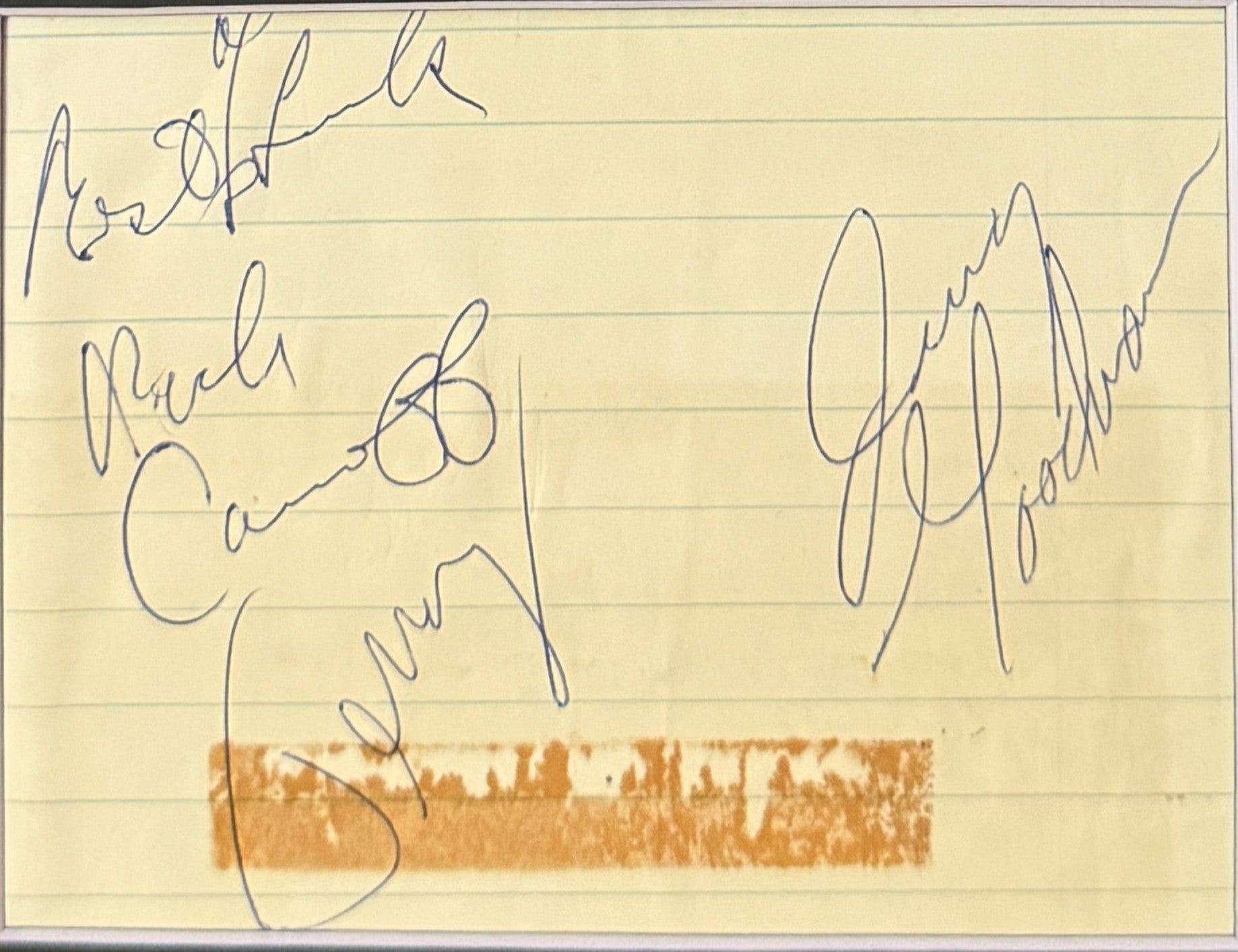 Autographs matted with reduced copy of The Flock's album cover (signed by Jerry Goodman, Rick Canoff and Jerry Smith)
