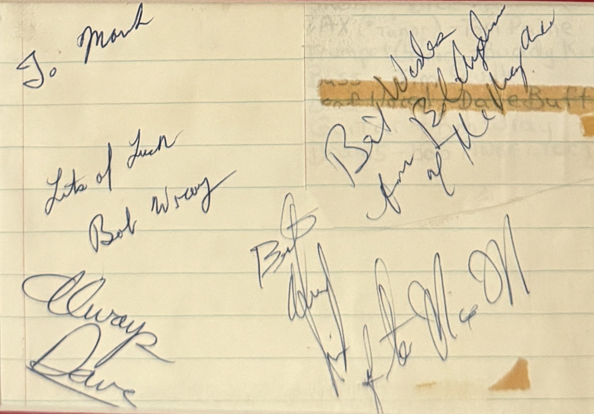 Autographs matted with reduced copy of The Magnificent Men's album cover (autographed by Bob Angelucci and Dave Bupp)