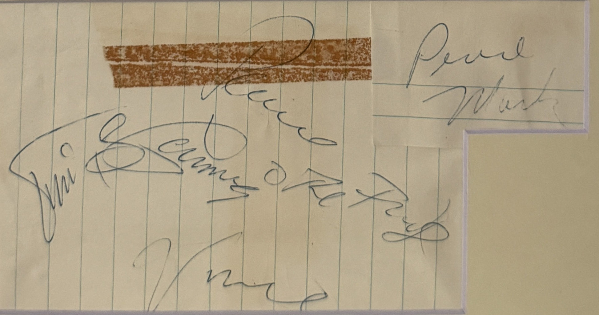 Autographs matted with reduced copy of Vanilla Fudge album cover (signed by Mark Stein, Tim Bogart, Carmine Appice, and Vinnie Martel)