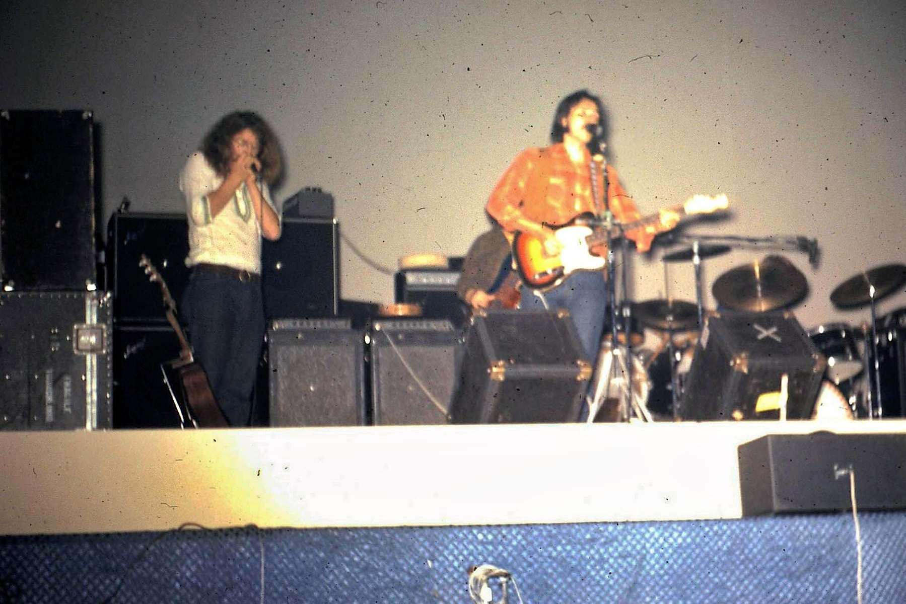 The Youngbloods were a folk-rock band from NYC best known for their 1969 hit "Get Together". Band members were Jesse Colin Young (vocals and bass), Jerry Corbitt (guitar and keyboard), "Banana" Levinger (guitar and electric piano), and Joe Bauer (drums). Pictured here, l to r are Banana and Young..